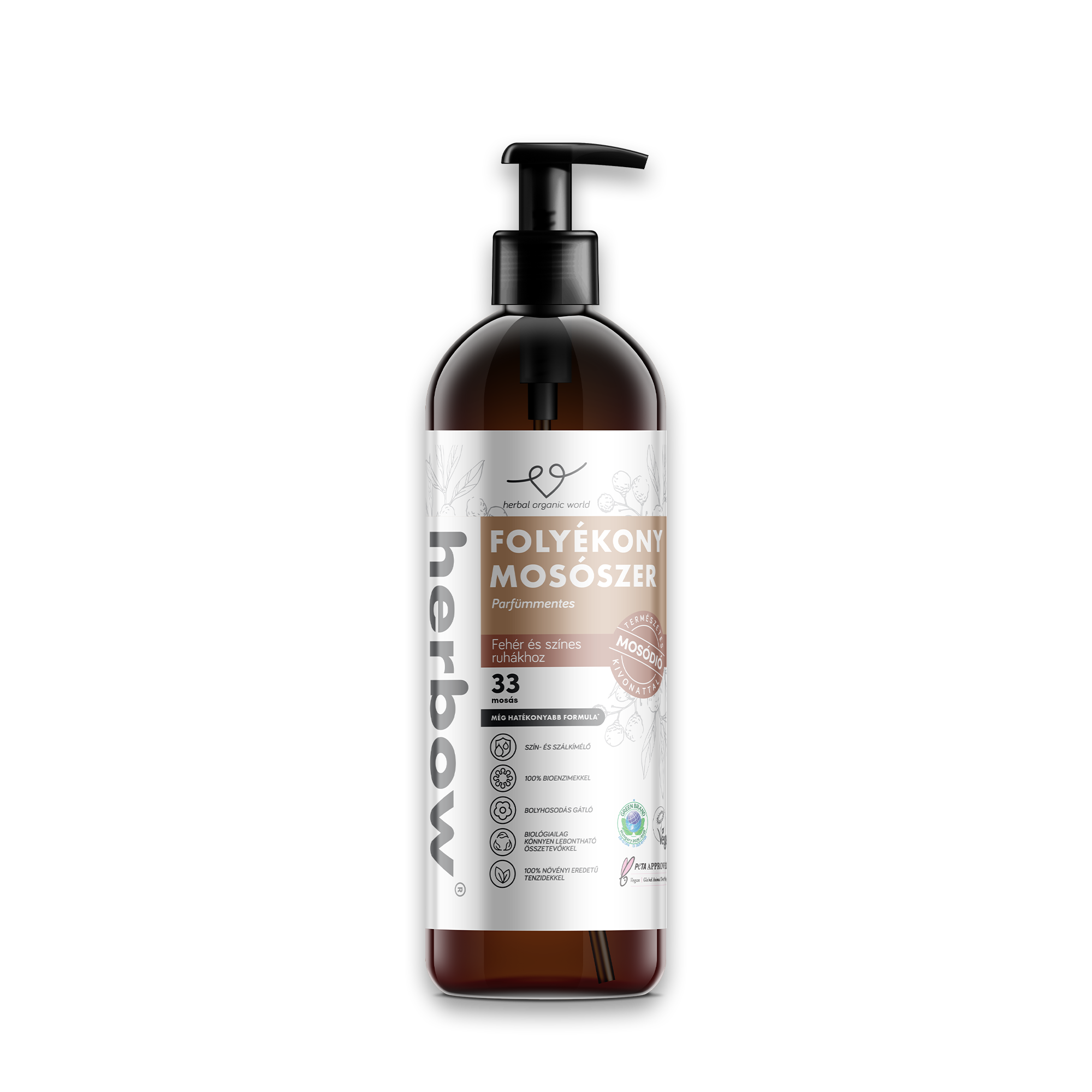 A Herbow gesztenyevirág illatú folyékony mosószer a természetes tisztaság és a friss, kifinomult illat harmóniáját kínálja minden mosásban. A kíméletes eljárással kinyert, 12%-os mosódió-extraktum és a bioenzimek kombinációja hatékonyan távolítja el a szennyeződéseket már alacsony hőmérsékleten is, miközben megőrzi a ruhák puhaságát és fehérségét, optikai fehérítő nélkül. A növényi eredetű összetevők kíméletesek a bőrhöz, mégis kimagasló mosóhatást biztosítanak, akár 30–40 °C-on is. A gesztenyevirág természetes illata tiszta, lágy és elegáns, finom frissességet hagyva a ruhákon, nem tolakodó, hanem harmonikus és természetközeli. A formula vegán, bőrkímélő és biológiailag lebomló, így óvja a textíliákat és a környezetet egyaránt.
