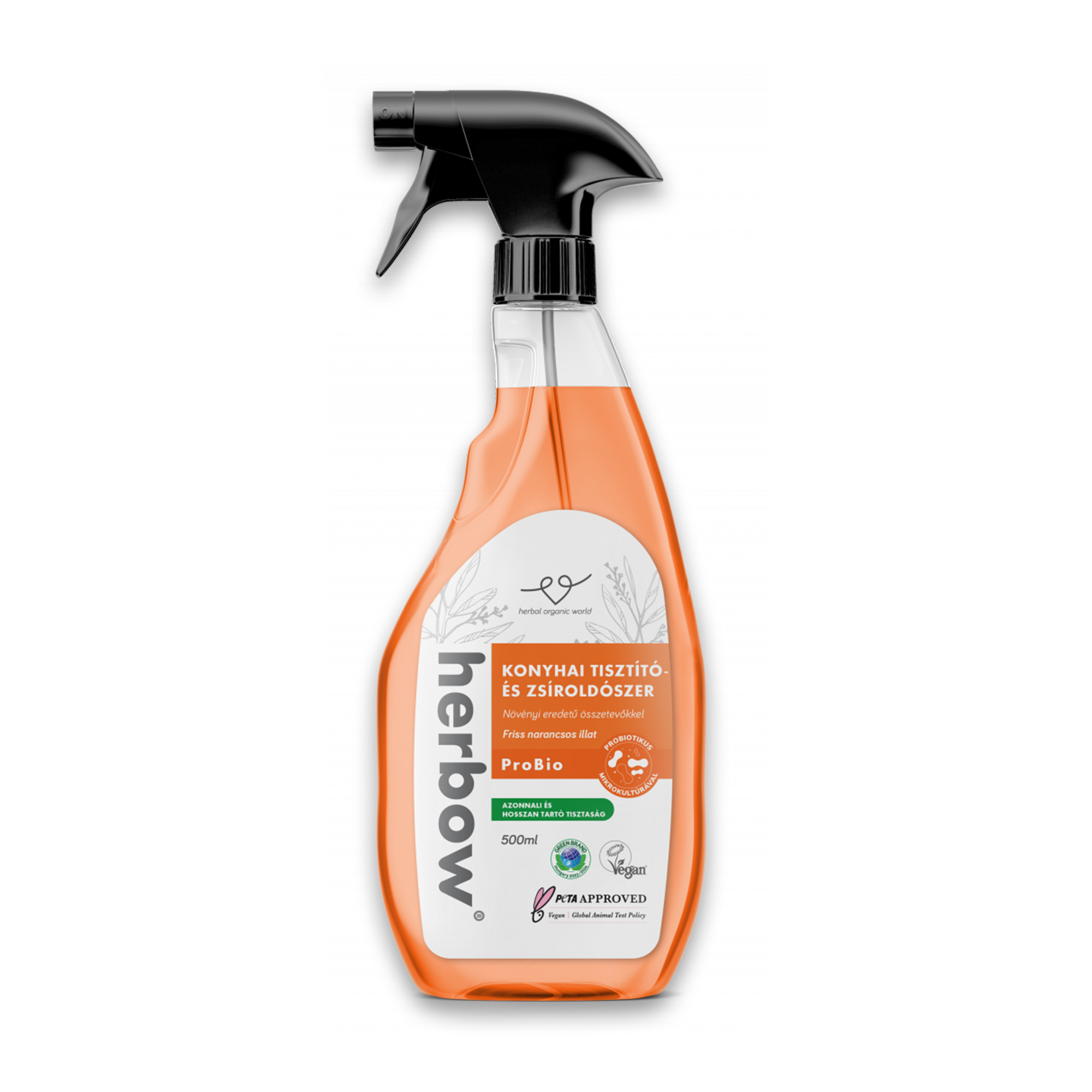 A Herbow Probiotikus Konyhai Tisztító és Zsíroldó – Friss Narancsos illattal a természetes tisztítás új szintjét hozza el a konyhába. Növényi eredetű összetevői gyorsan oldják a zsírt és a makacs szennyeződéseket, miközben a probiotikus mikroorganizmusok a tisztítás után is tovább dolgoznak, fenntartva a felületek higiénikus állapotát. Fékezett habzású formulája kevesebb öblítést igényel, így víztakarékos és környezetbarát megoldás. Hatékonyan tisztítja a tűzhelyeket, sütőket, páraelszívókat, munkalapokat, tepsiket, csempéket, padlókat és konyhai eszközöket, miközben nem hagy csíkot vagy foltot. Friss, narancsos illata üde, természetes tisztaságérzetet teremt a konyhában.